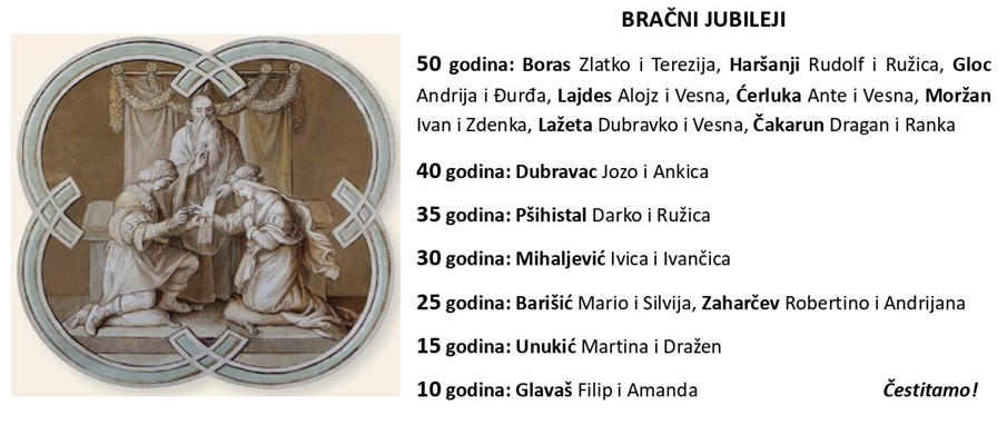 Petnaest bračnih parova danas obnavlja bračne zavjete o obljetnici sklapanja sakramenta ženidbe. Čestitamo!