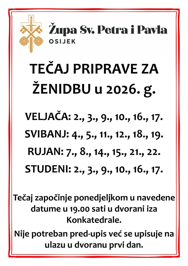 TEČAJ PRIPRAVE ZA ŽENIDBU 2026.g.